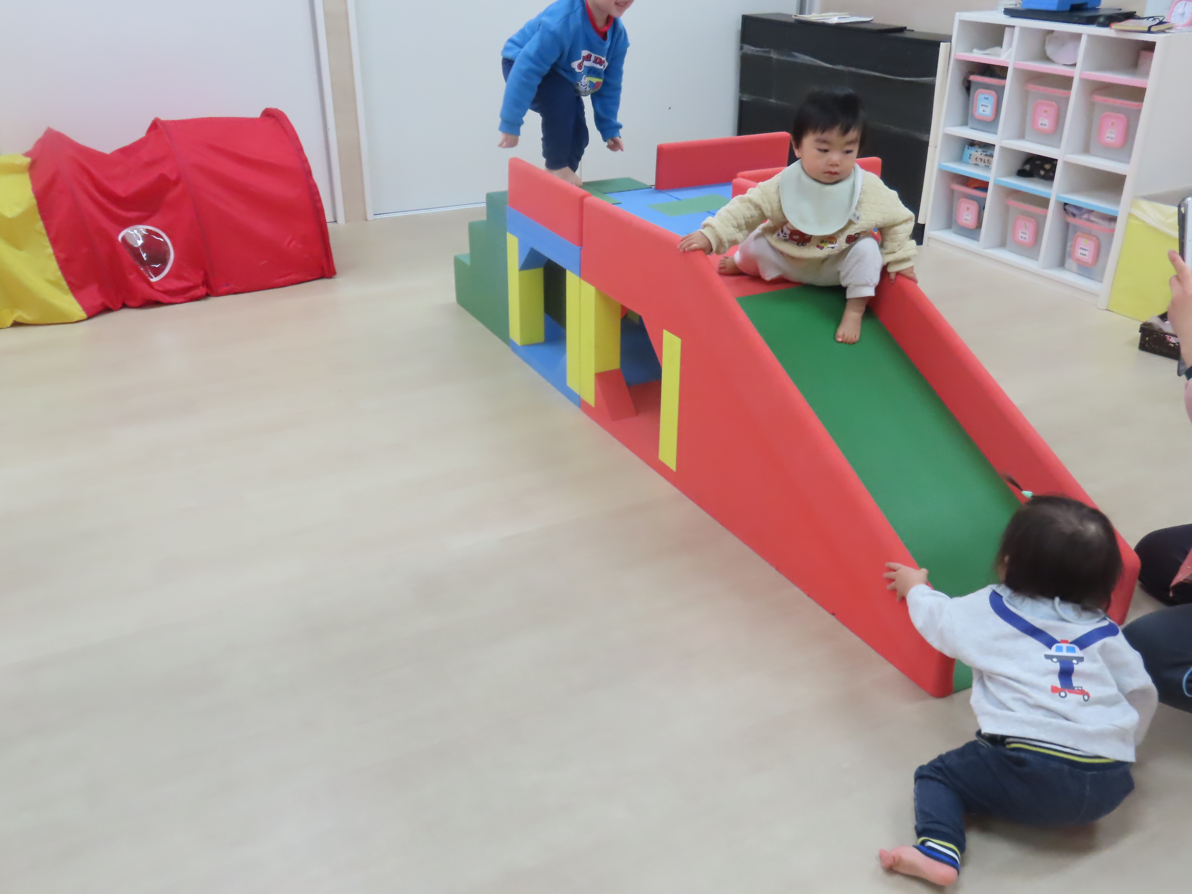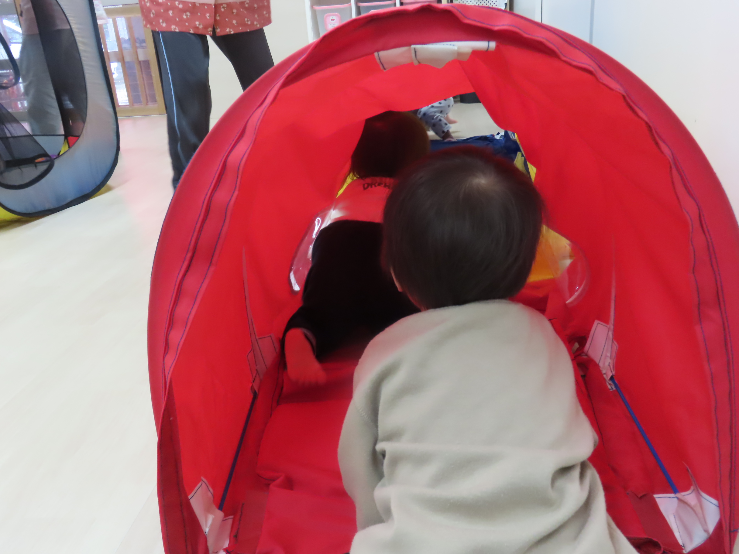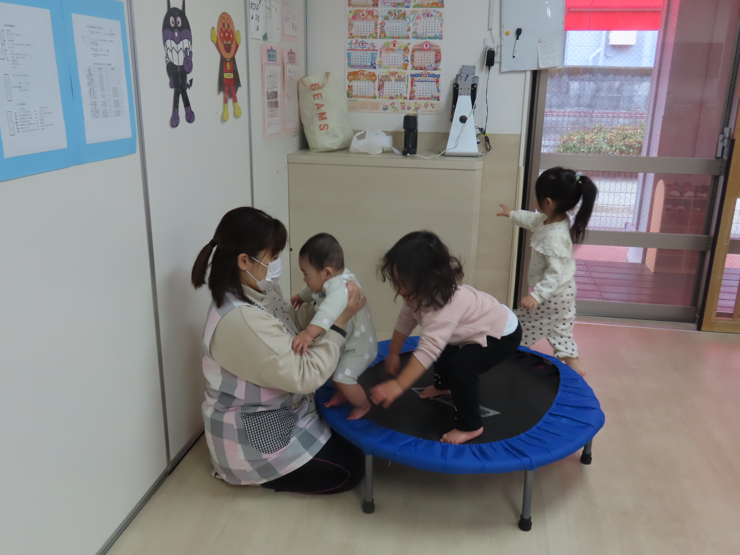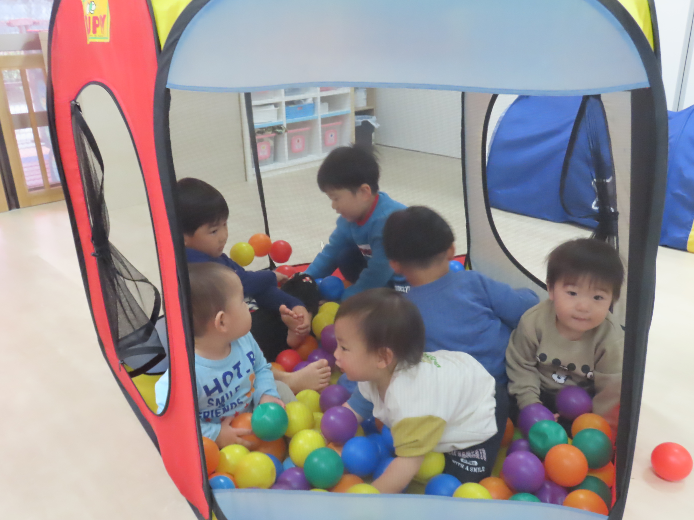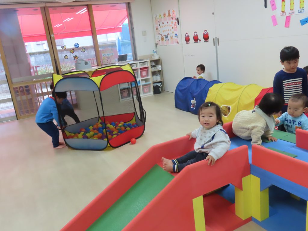 今月の「いっしょにあそぼう!」は、カップを積み上げる新しいおもちゃや、小麦粉ねんど、運動あそびなどでたのしみましたよ!